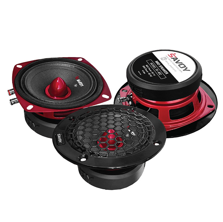 میدرنج 4 اینچ ساووی SV-402، میدرنجی با کیفیت صدای بسیار خوب و حجم صدای بسیار بالا می باشد که در صورت نصب کنار یک جفت سوپرتیوتر و ساب ووف قدرتمند یک صدای ایده آل به کاربر می دهد. SV-402 با 80W حداکثر توان خروجی قدرت بالای را به نسبت تولید میکند ، توان اسمی این محصول 40 RMS میباشد و برای راه اندازی به آمپلی فایرهای قدرتمند و با کیفیت احتیاج دارد. 93 دسیبیلی و مقاومت ۴ اهمی این میدرنج کیفیت صدای سیستم صوتی شما را چندین برابر می کند.
