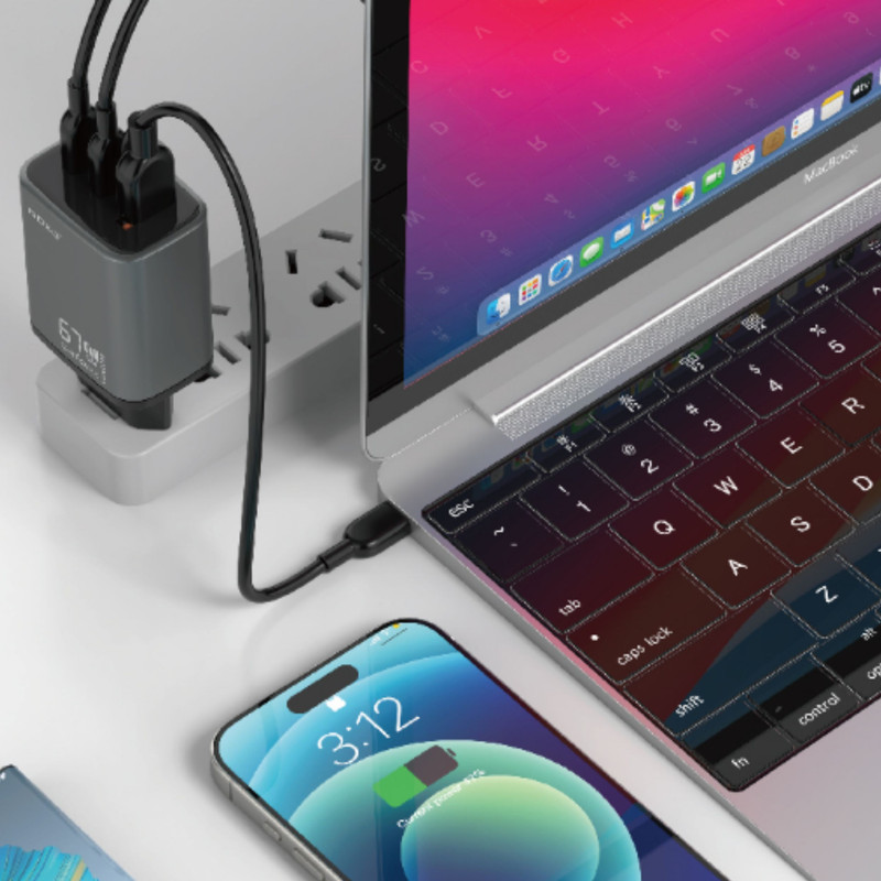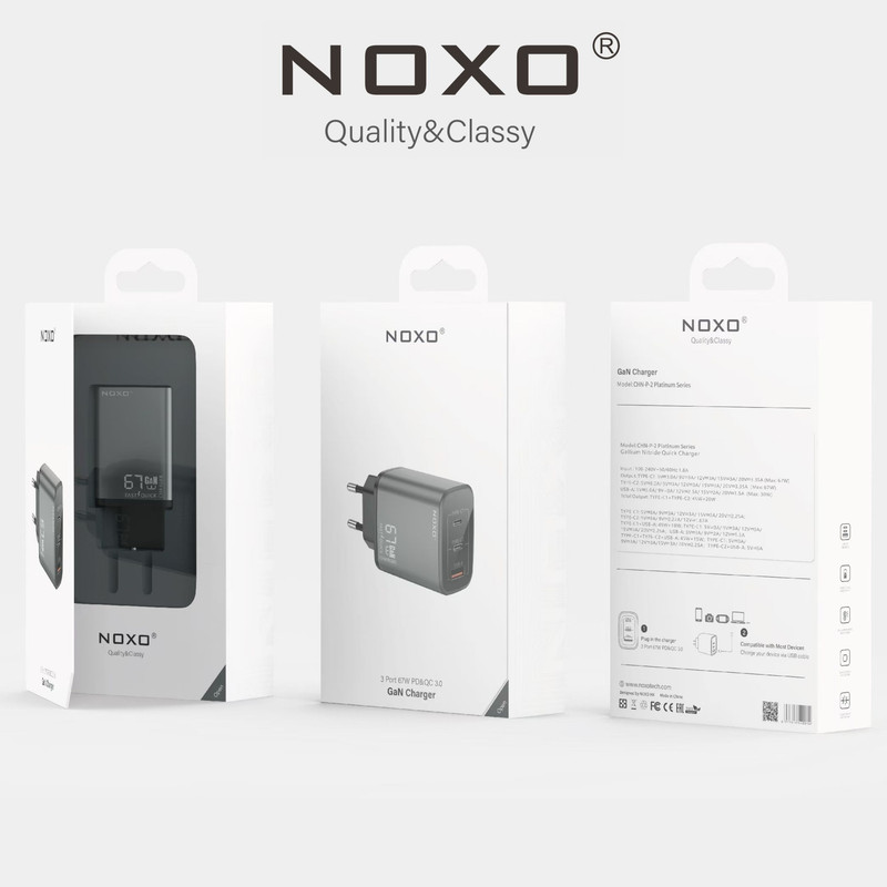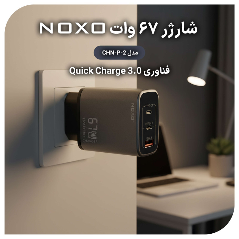 شارژر دیواری نوکسو مدل CHN-P-2 یک محصول مدرن و قدرتمند است که با بهرهگیری از فناوری GaN و پشتیبانی از PD و QC3.0، تجربهای سریع، ایمن و کارآمد در شارژ دستگاهها ارائه میدهد. این شارژر با ۳ پورت خروجی (دو درگاه Type-C و یک درگاه USB-A) و توان حداکثر ۶۷ وات طراحی شده و امکان شارژ همزمان چند دستگاه از جمله لپتاپ، گوشی و تبلت را فراهم میکند. تراشه هوشمند داخلی جریان برق را به طور خودکار کنترل کرده و دستگاهها را در برابر اضافه جریان، اضافه ولتاژ، افزایش دما و اتصال کوتاه محافظت مینماید.