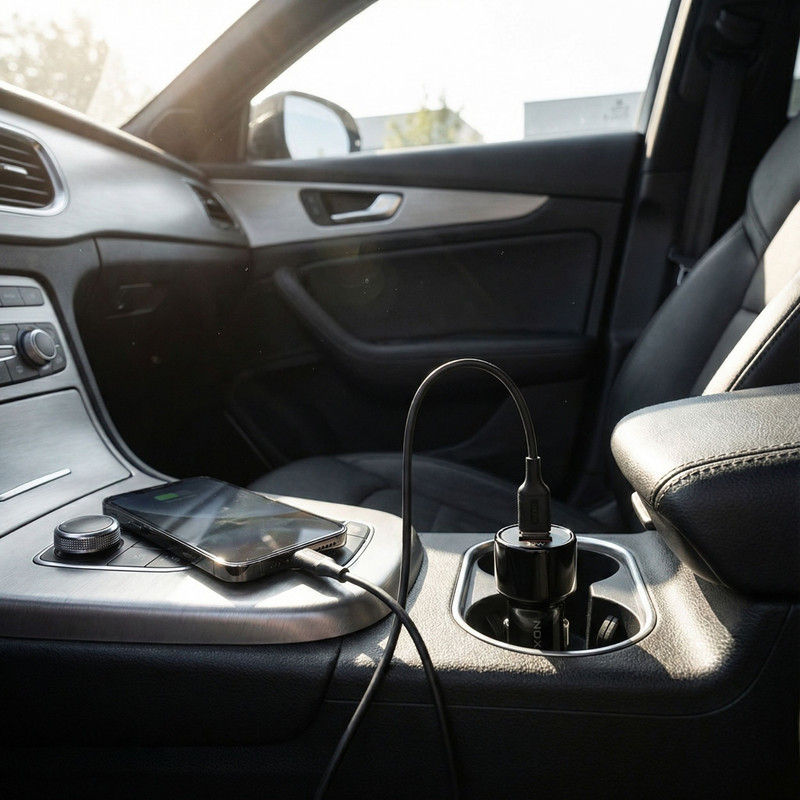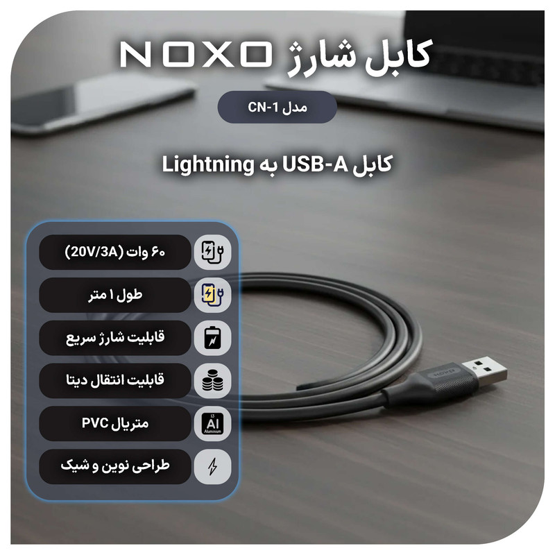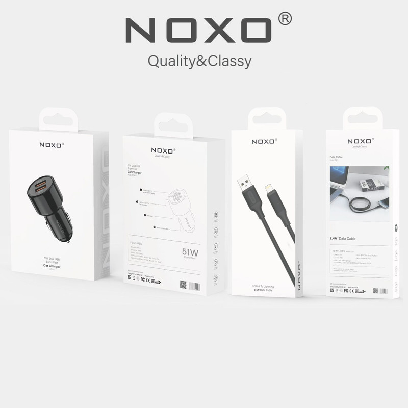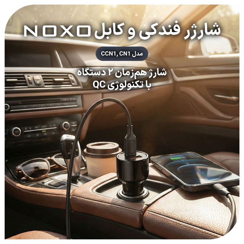 شارژر فندکی 51 وات دو پورت نوکسو مدل CCN-1 به همراه کابل تبدیل USB-A به لایتنینگ